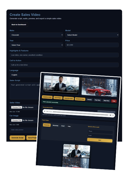 Create, generate, and send high-converting video ads directly to your leads.